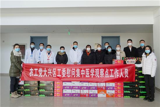 下午,经大兴区委统战部协调,区委统战部副部长杨志兴、姜京鸽等偕同慰问团一行赴黄村镇外研社国际会议中心、兴丰街道麗枫酒店、新媒体产业基地锦江之星酒店和汉庭优佳酒店、亦庄镇喆啡酒店、采育镇北汽国际会议中心等8个区级集中医学观察点慰问驻点工作人员,并送上张汉龙捐赠的400箱速冻水饺和新鲜水果等食品。